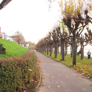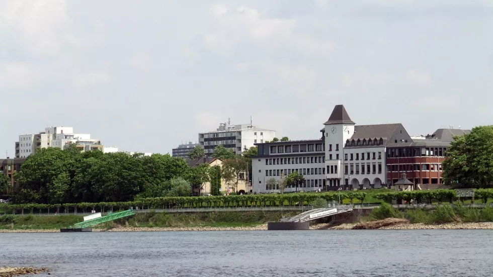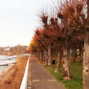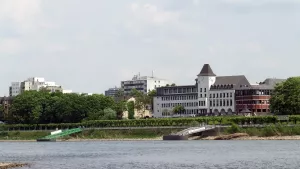 Das Rheinboulevard in Porz von der anderen Rheinseite aus