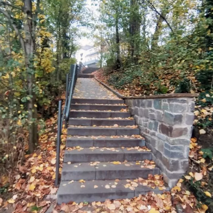 • Denkmalschutz (historische Treppenanlage und Uferpromenade)