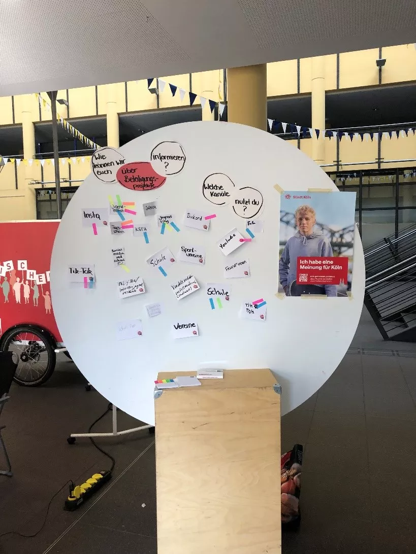 Der Fachtag Misch MIT! hat am 28. April 2023 im Kalk Karree stattgefunden. Bei der Veranstaltung hatten junge Menschen die Möglichkeit, mit Fachleuten aus der Politik, der Verwaltung und der Kinder- und Jugendarbeit sowie weiteren Menschen aus der Kinder- und Jugendhilfe zu sprechen und aktiv mitzumischen.